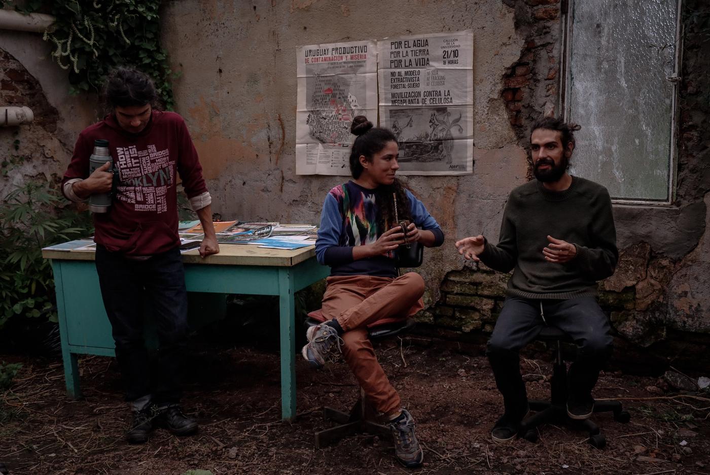 En la cocina de Charamusca chifla la caldera, el agua está lista para llenar los termos de mate. En una tarde de abril de 2024 hay unas quince personas reunidas para la presentación del Archivo Agua y Territorio: una selección de afiches, volantes, documentos, mapas, notas de prensa e investigaciones relacionadas al movimiento socio-ambiental en Uruguay, que coleccionaron Sofía Taranto y Marcelo Cabrera, los guardianes de esta casa.