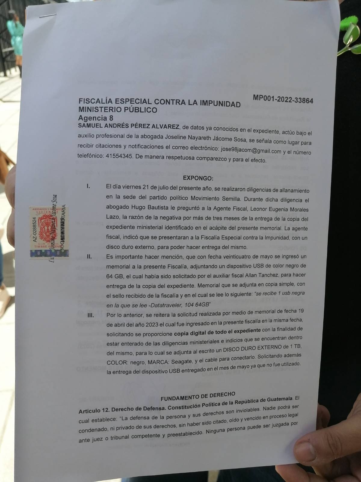 Momento en el que abogadas de @msemillagt presentan memorial para pedir a la Feci el expediente de acusación en contra el partido. 🧐Se esperaba el acompañamiento de PDH pero no se presentaron. ❌ 🎥@MapacheRockspic.twitter.com/Xtad00wVHy