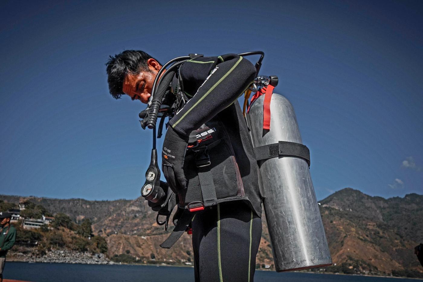 Una mañana de sábado mientras el sol se asomaba entre los volcanes Tolimán y San Pedro, alrededor de las ocho de la mañana, un grupo de mujeres del pueblo Tz’utujil se reunió en el embarcadero con dirección a Panajachel, Sololá. De fondo, el cerro Rostro Maya de San Juan La Laguna se recortaba en el horizonte, mientras un grupo de buzos, vestidos de negro, se preparaba para sumergirse. Sus movimientos eran interrumpidos por turistas y comunitarios que, curiosos, se detenían a tomarse fotografías con ellos.