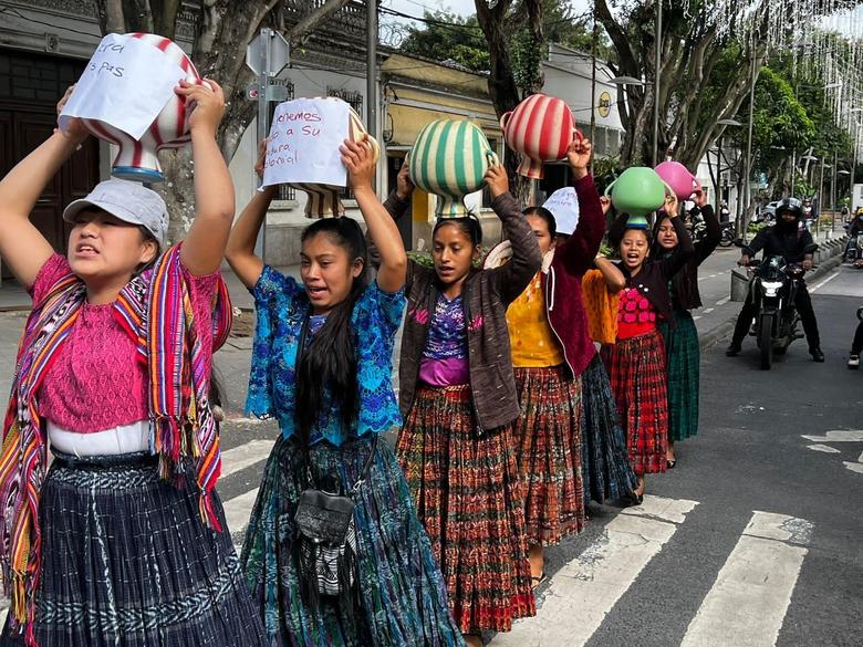 “Consuelo Porras como mujer no nos representa”, gritaban las defensoras mientras caminaban por la zona 1 capitalina y se acompañaban de más niñas, adolescentes y activistas de este territorio maya Q´eqchi.