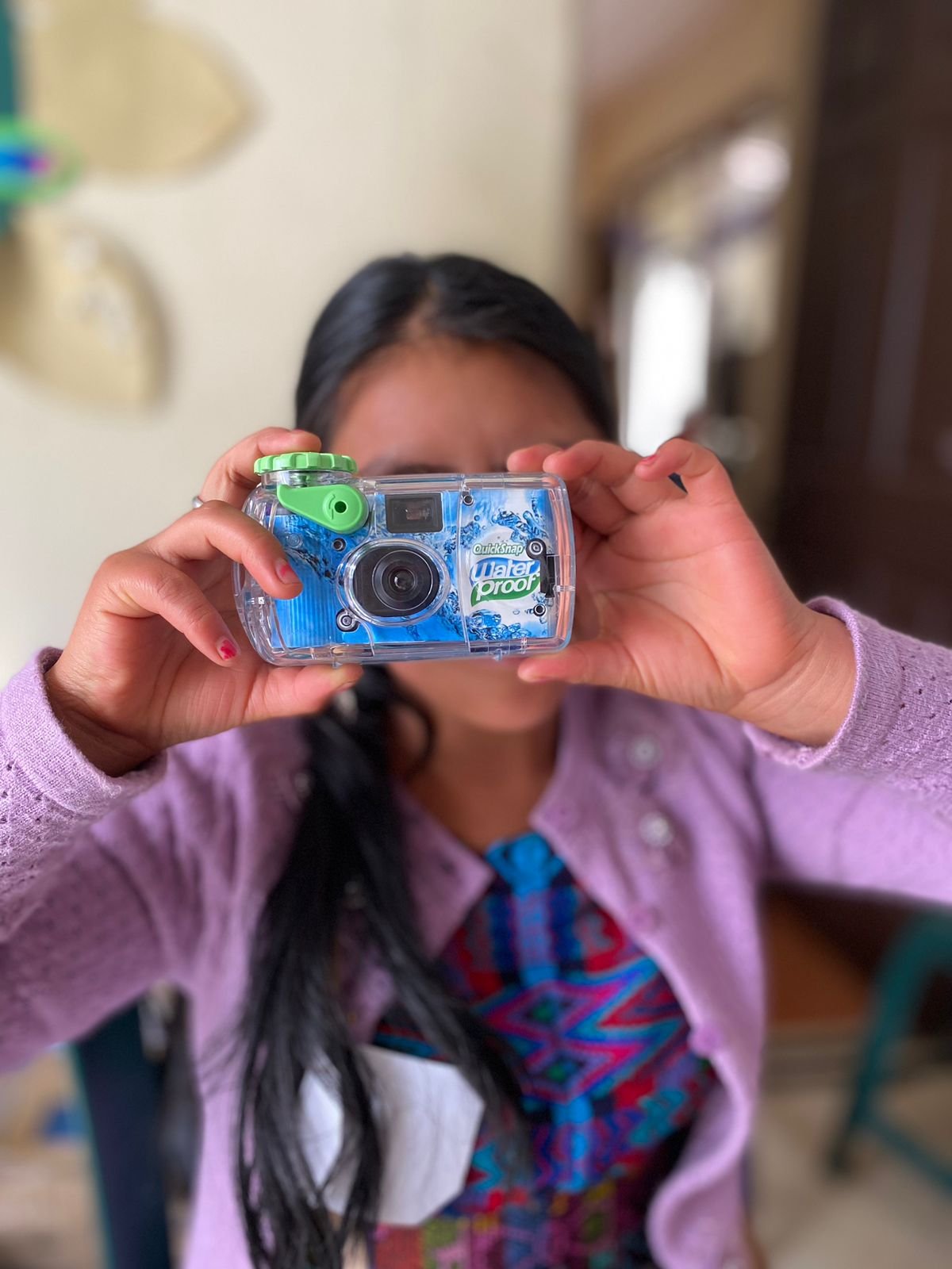 Estafanía, de 10 años, además de tomar fotografías, fue modelo para ser capturada con una foto de retrato por sus compañeras.