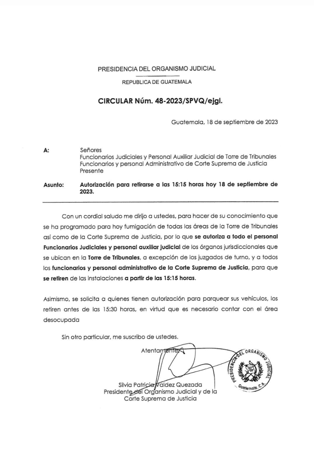 Fecha que ha coincidido con una autorización interna a todo el personal y funcionarios judiciales de retirarse a las 3:15, por una supuesta fumigación programada.