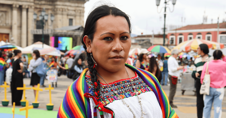 Mónica Estefania Chub, del municipio de San Pedro Carchá, Alta Verapaz también acudió al evento y dijo que “Desde nuestros territorios nos sumamos a esta marcha porque también desde nuestros territorios estamos exigiendo derechos y que cese la criminalización y persecución que sufrimos por nuestra identidad y orientación sexual”.