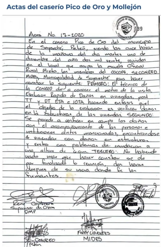 En la madrugada del 18 de noviembre de 2020, César Martínez, presidente del Consejo Comunitario de Desarrollo (COCODE) de Pico de Oro, sale de su vivienda. En ese momento, el río Salinas está calmado y su cauce corre a unos 10 metros de su casa, como normalmente lo hace, pese a que ha llovido ininterrumpidamente por más de 30 días.