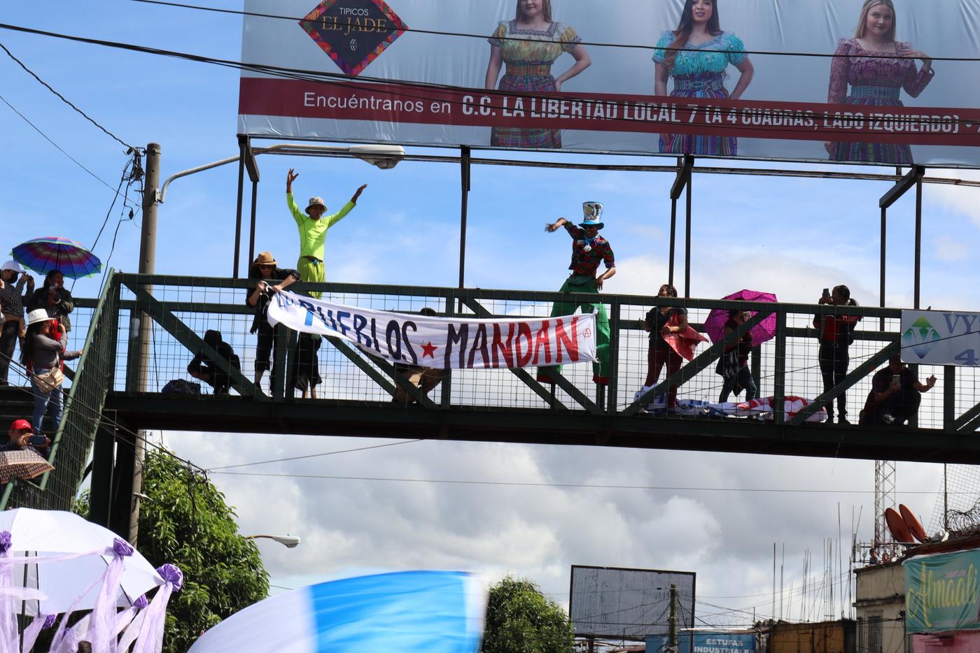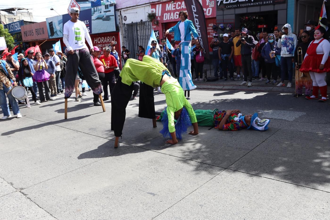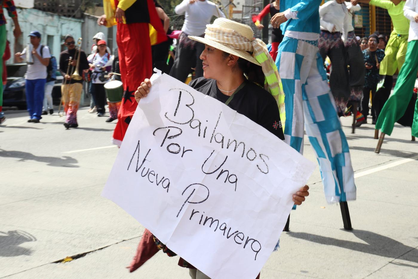 “Queremos una Guatemala más justa, solidaria y equitativa, en la búsqueda incansable de la justicia social, explicó Raúl de la colectiva de artistas durante la marcha de este bloque, que comenzó en el Trébol, en la zona 8 capitalina, y enfiló al Centro Histórico de la ciudad.