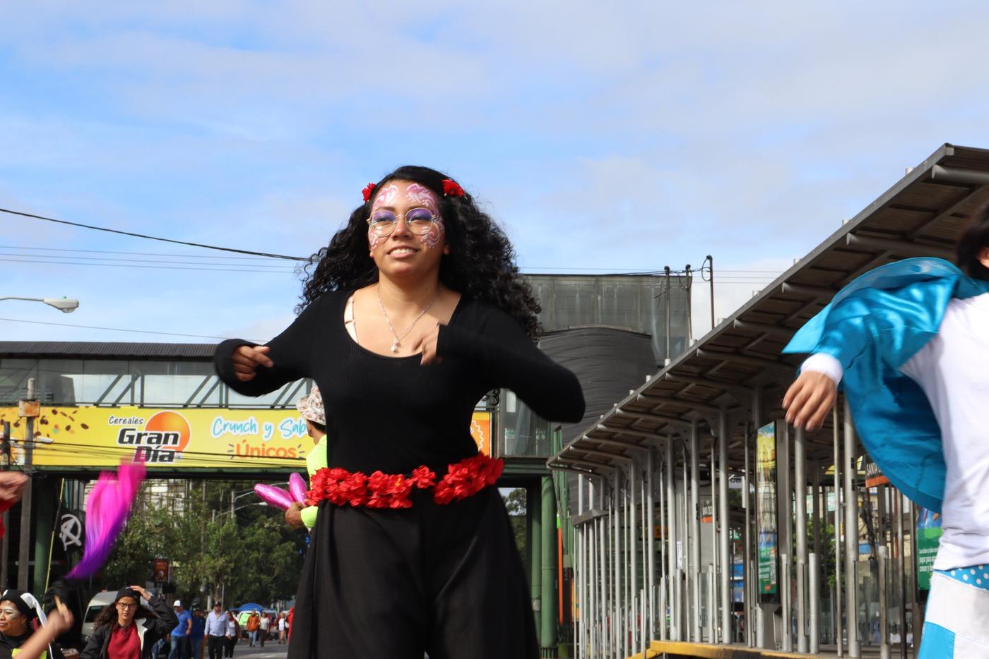 Ana Juárez, del colectivo Caja Lúdica, compartió su perspectiva en la manifestación artística de hoy. “Tras los Acuerdos de Paz, las calles se han convertido en un espacio donde el arte se manifiesta como una expresión de resistencia, aportando un componente alegre y artístico a la causa”, expresó.