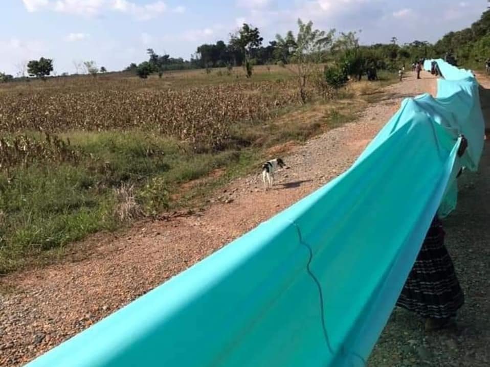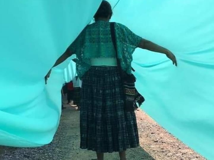 <Ríos de gente > proyecto de la artista Regina Galindo junto a Abelino Chub Caal y producida por Maíz de Vida “Rememoró los lugares donde alguna vez pasó un río que fue desviado o contaminado por la industria extractiva que despoja de sus recursos a los pueblos originarios.”