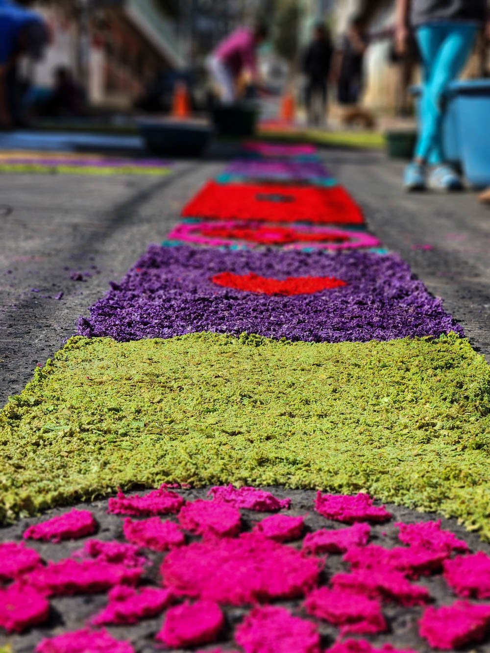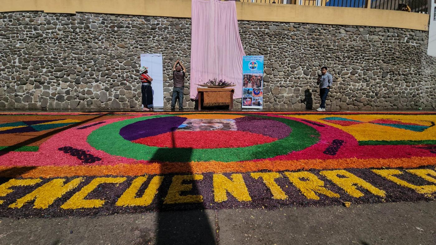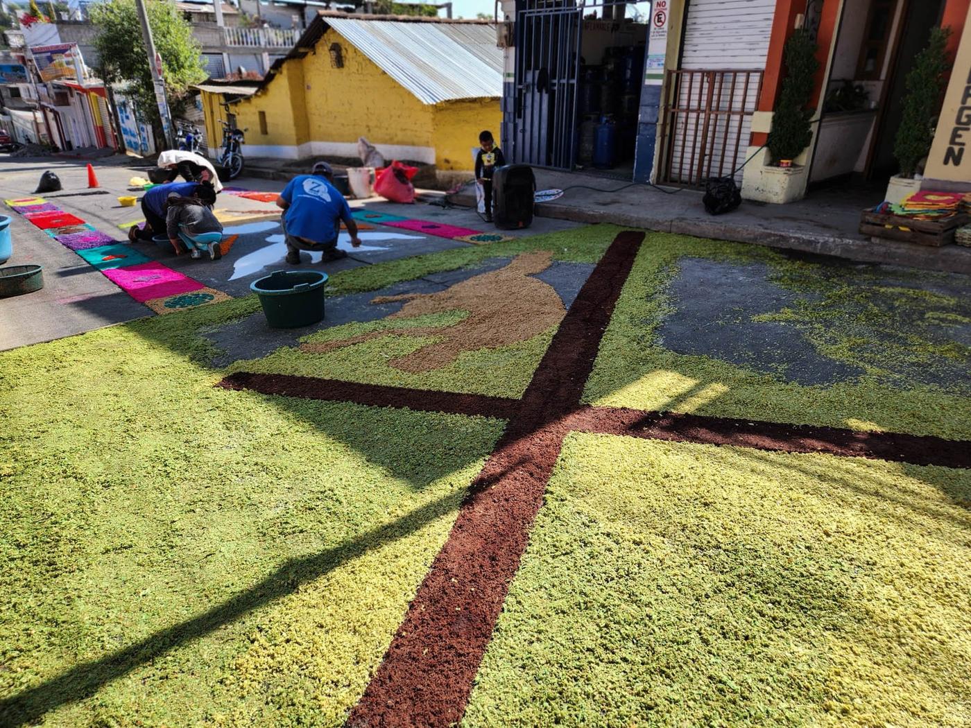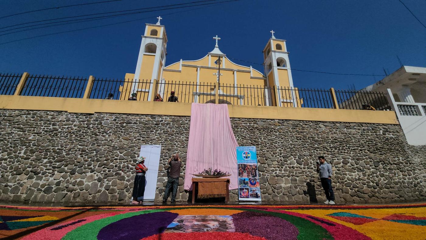 El padre Delfino López indica que durante la mañana del viernes santo (29 de marzo), se realizará el vía crucis, las familias ofrecen su devoción en los diferentes materiales que contiene cada alfombra, también por la al atardecer se representará la pasión de Cristo.