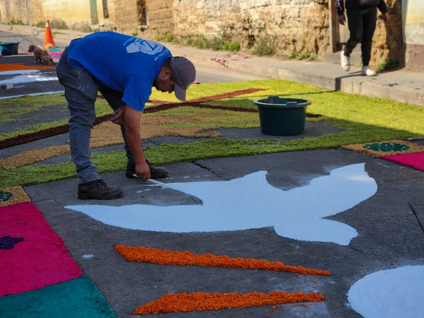 Las familias continúan manteniendo la tradición de elaborar alfombras para el paso procesional en semana santa, una tradición que continua de generación en generación en Comitancillo.