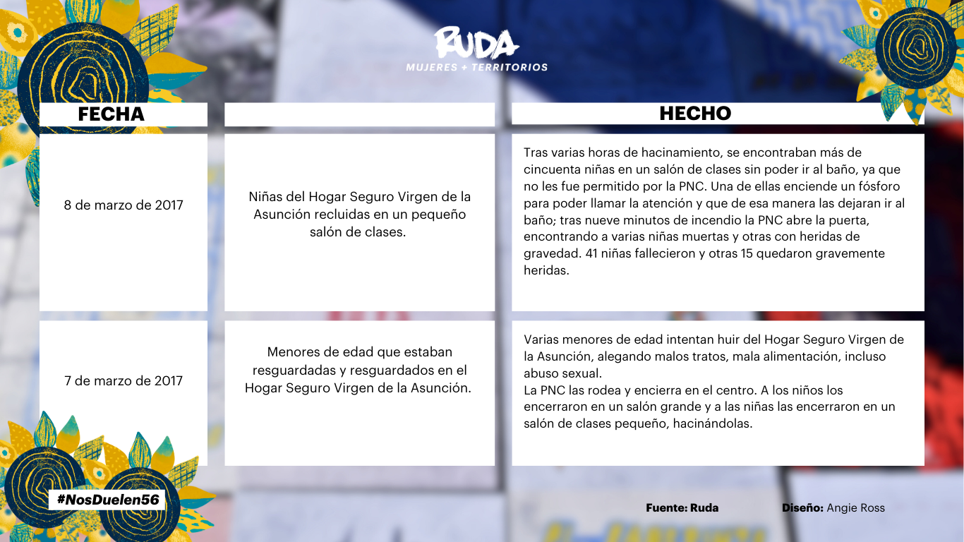 Sin duda, el caso del incendio Hogar Seguro Virgen de la Asunción ha sido el crimen más atroz que el Estado ha cometido hacia la niñez guatemalteca en los últimos 20 años. Todas las niñas que debían ser resguardadas ahí tenían condiciones de vida sumanente difíciles, desde maltrato fisíco, abandono y abuso sexual.