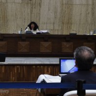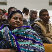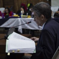 Rosada entonces ratificó ante el tribunal el peritaje que realizó. Mientras tanto varias mujeres Q’eqchis querellantes en este juicio, escuchaban con atención sus palabras, una traductora Q’eqchi hace el intento por traducirles en su idioma materno la conversación que inicia Rosada ante el tribunal.