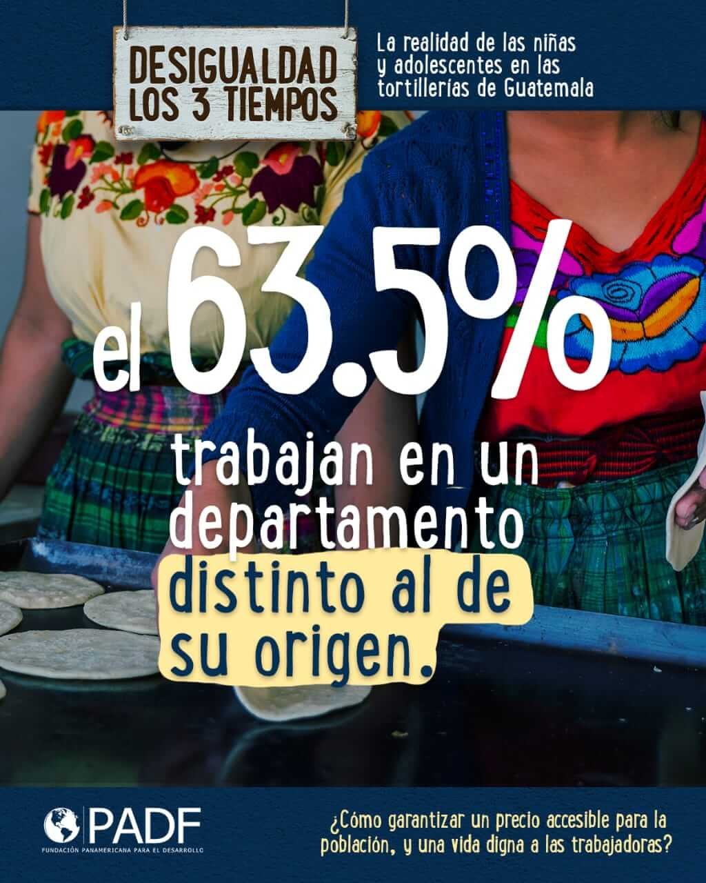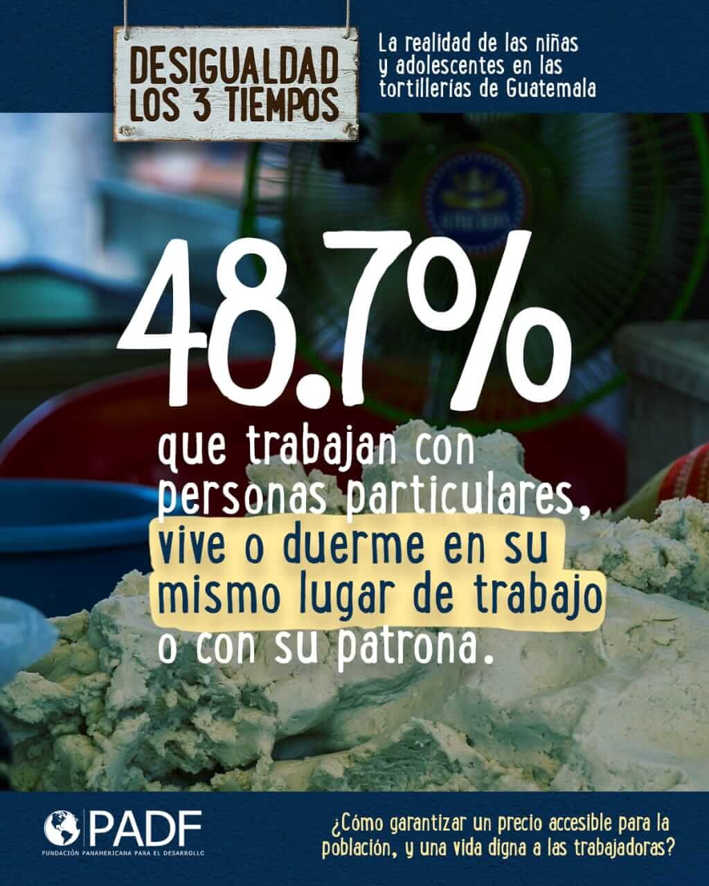 Hacer tortillas o “tortear” se concibe como una tarea doméstica o de cuido que usualmente se enseña a las mujeres desde niñas como parte de su rol de género en el hogar, principalmente niñas indígenas del área rural y en condición de pobreza. Estos elementos muestran que en las tortillerías se intersectan el racismo estructural y el patriarcado como las dos construcciones históricas que han tenido mayores repercusiones en las niñas, adolescentes y mujeres indígenas. La yuxtaposición de estas estructuras de opresión sostiene y reproducen roles de género, una estratificación social y una división sexual del trabajo que vulnera a las niñas y adolescentes indígenas a ser sometidas a condiciones de explotación económica en trabajos como la producción y venta de tortillas”, señala la investigación.