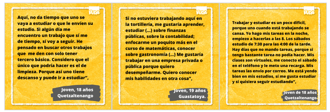 La investigación realizada para mostrar la realidad en los centros urbanos de las cabeceras departamentales, reveló que niñas, adolescentes y mujeres que trabajan en las 292 tortillerías seleccionadas en Huehuetenango, Quetzaltenango, Jalapa, El Progreso y la Ciudad de Guatemala, son explotadas, limitadas en sus derechos y libertades por sus familiares o personas particulares.