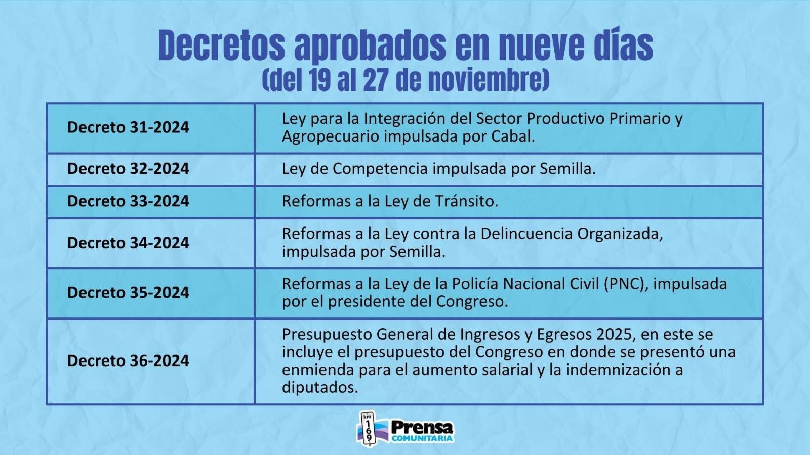 Leyes aprobadas en nueve días (del 19 al 27 de noviembre)
