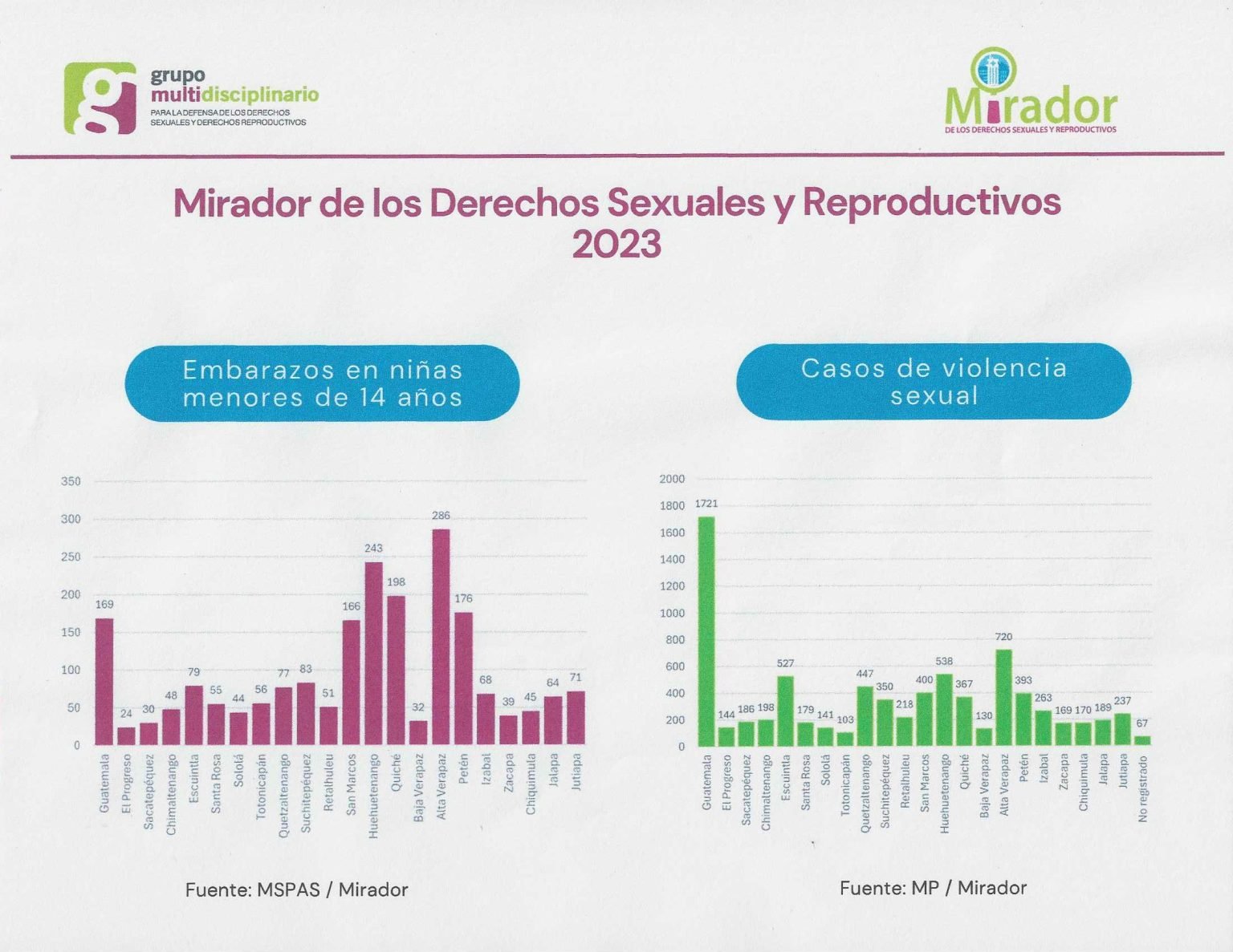 Se ha hecho un análisis de los casos de embarazo en los departamentos y se expuso que esta debería ser una preocupación para el país, se detectó un registro de 2,104 embarazos forzados y 1,251 partos en niñas menores de 14 años los cuales departamentos como Alta Verapaz, Huehuetenango, Quiché, Petén, Guatemala y San Maros quedan con una tasa alta en embarazos a nivel nacional.
