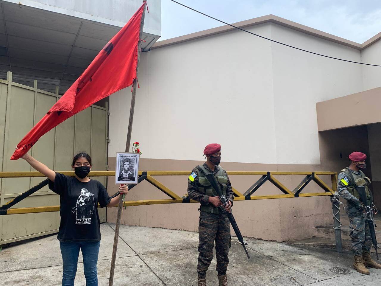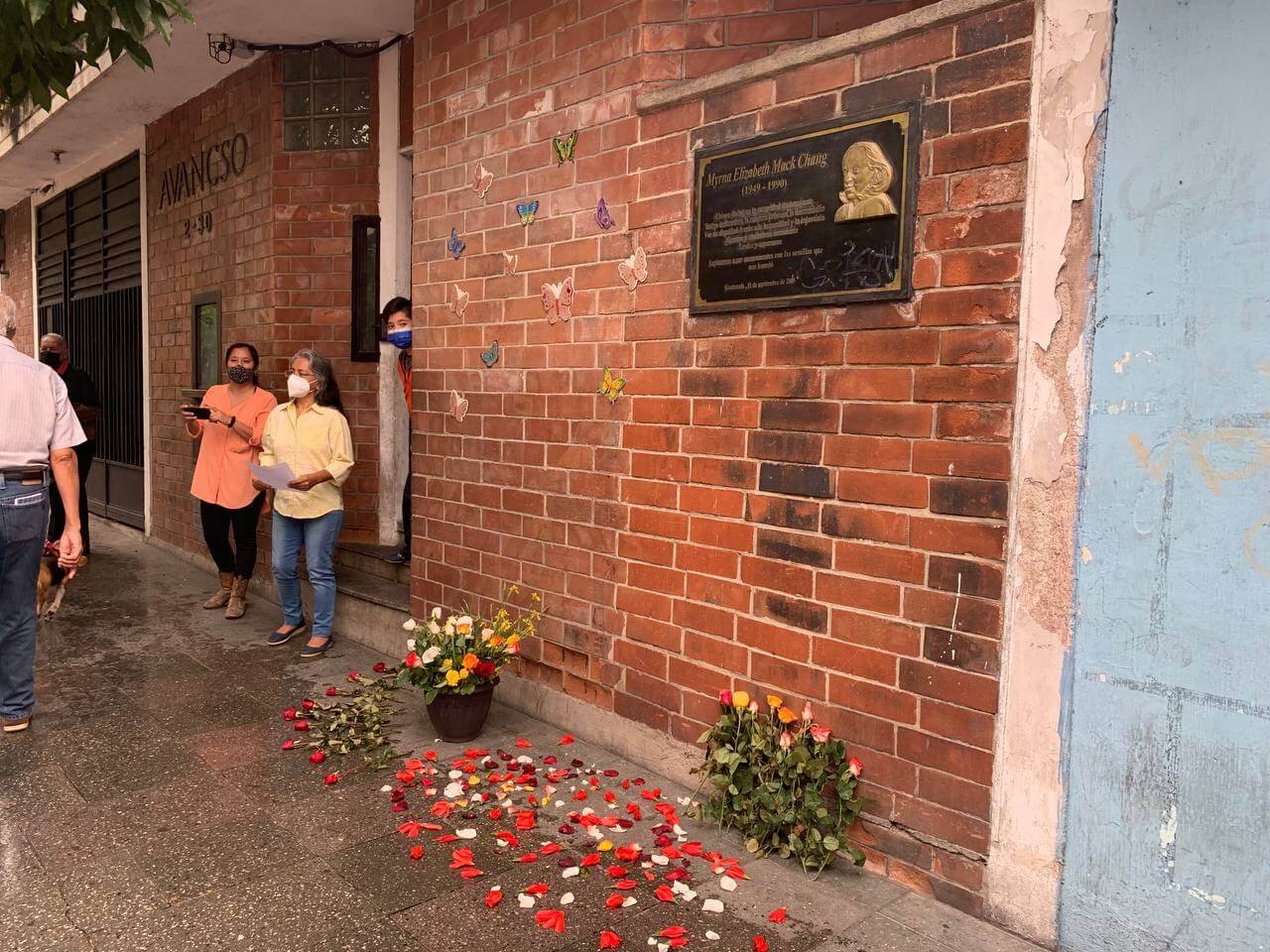 El siguiente punto fue frente a la sede de la Asociación para el Avance de las Ciencias Sociales -AVANCSO- donde se conmemoró la vida y obra de Myrna Mack Chang, quien fue coordinadora de estudios antropológicos sobre las comunidades desplazadas durante la guerra.