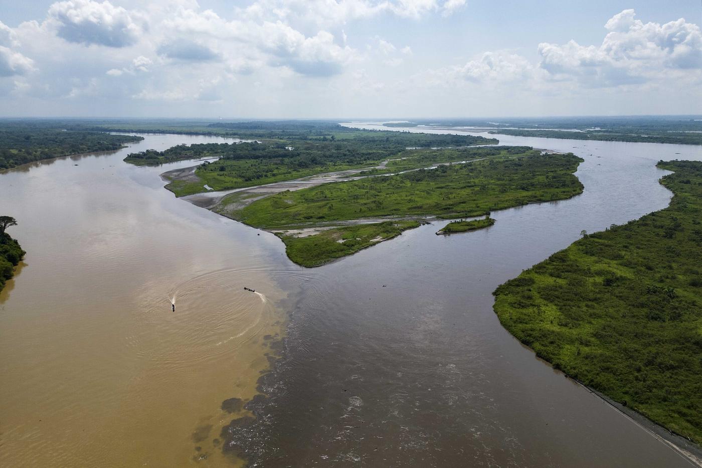 Vista aérea de la unión de los ríos Sogamoso y Magdalena. Foto: cortesía Christian Escobar Mora